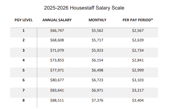 - Dedicated House Staff Lounge, call rooms, and additional meal funds.